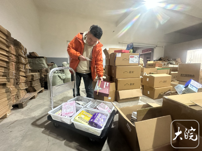 大皖新闻讯 3月2日下午1点,芜湖市鸠江区清水创业园一间400平方米的仓库里,打印机“滋滋”作响,一张张订单不断吐出。家住镜湖区的“90后”夫妻张骏、王茹推着小推车穿梭在货物中,配货、装箱、打包,再将货物堆放在仓库门口,等待快递员上门揽收,动作麻利又默契,这是他们创业近一年来的日常。
