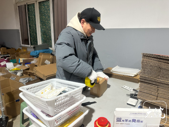 陈军正在给商品打包